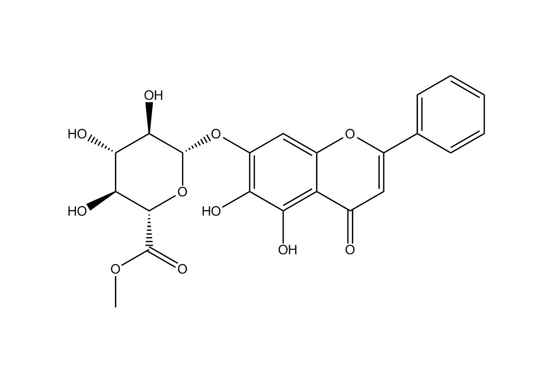 【英文別稱】 5,6-Dihydroxy-4-oxo-2-phenyl-4H-1-benzopyran-7-yl beta-D-glucopyranosiduronic acid methyl ester